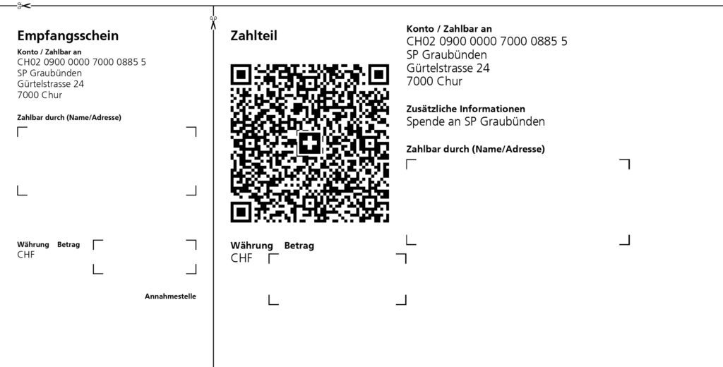 Per pudair finanziar noss projects sco era nossas campagnas electoralas e da votaziun essan nus dependents da donaziuns. Uschia pudain nus far frunt als budgets gronds da las associaziuns d’economia ed organisaziuns da lobby. Per tia donaziun essan nus fitg engraziaivels.
